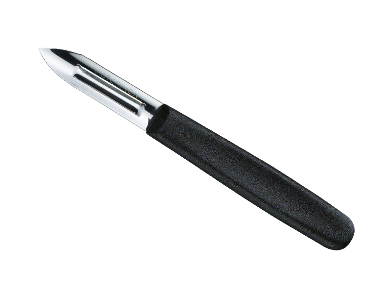 | Eplucheur Victorinox, deux fentes, manche polyamide noir Livrés par boîte de 20 uniquement et facturés à la pièce. |