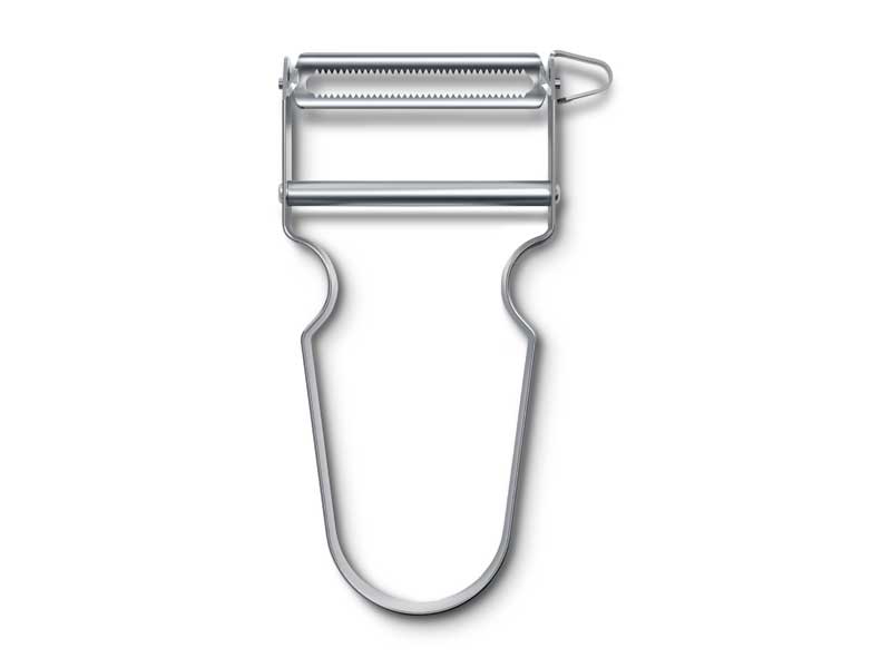 | Rasoir à légumes Victorinox STAR, tout inox, manche 11 cm, lame micro-dentée. |