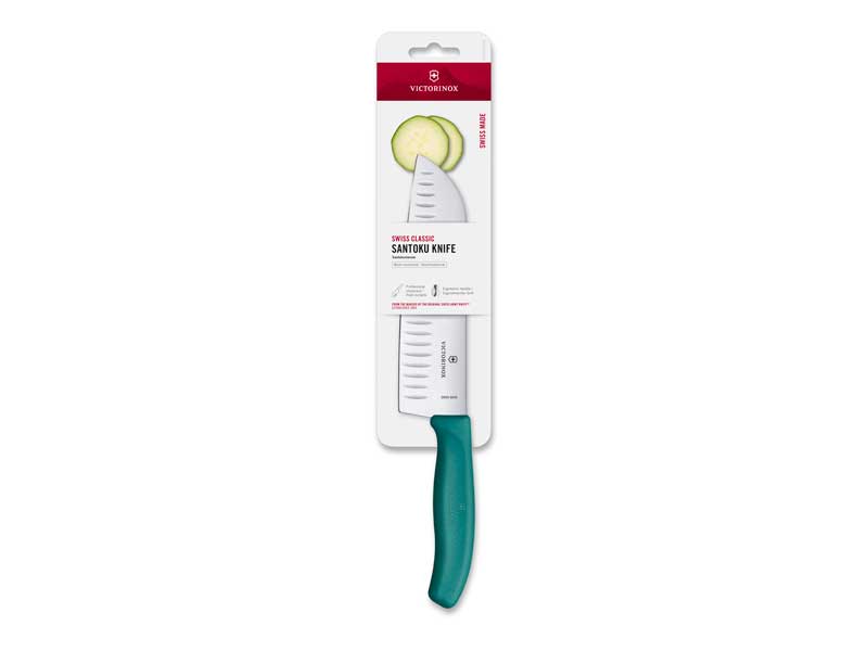 • Santoku Victorinox Swiss Classic lame alvéolée 17 cm - manche vert